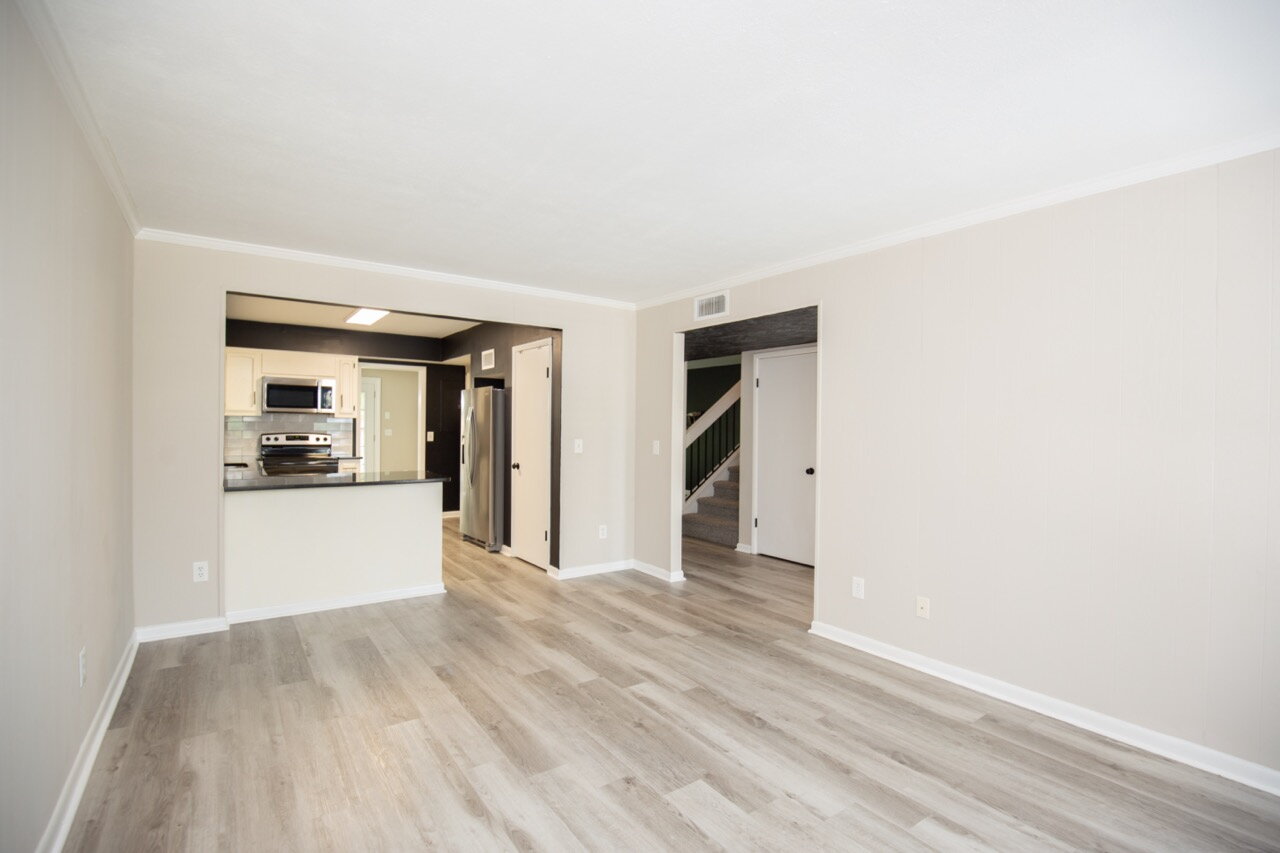 The main level of the home has pretty LVP flooring. As you enter the front door you have a nice size entry way. Left you have a bonus area that may be used for office space, play room or additional living area. Nice size kitchen with lots of storage & separate dining area. The oversized living space with TV mount provided. Follow the open stairway to the second floor to find the very large three bedrooms and two full baths. Each room has large windows for natural light and nice sized closets. You will have a nice private back patio with storage shed. The back area faces natural area of flowers, trees... no other buildings. Two designated parking spaces.