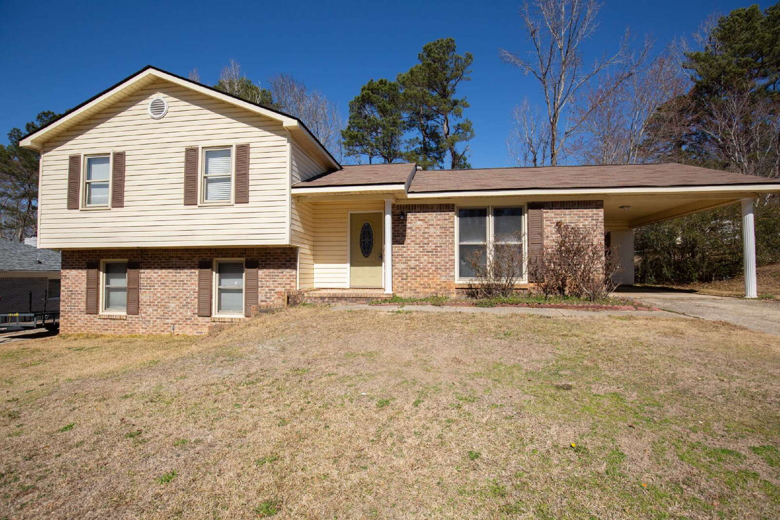 Kitchen including stainless steel appliances, granite counters and decorative marble mosaic tile backsplash, stainless steel sink, 2 living rooms. Formal Dining room, cozy fireplace, split level home with rear patio for BBQ, Carport with storage, completely remodeled north Columbus home on nearly quarter acre private fenced lot. Top North Columbus schools including Eagle Ridge Academy Elementary, Blackmon Road Middle School and Shaw High School.