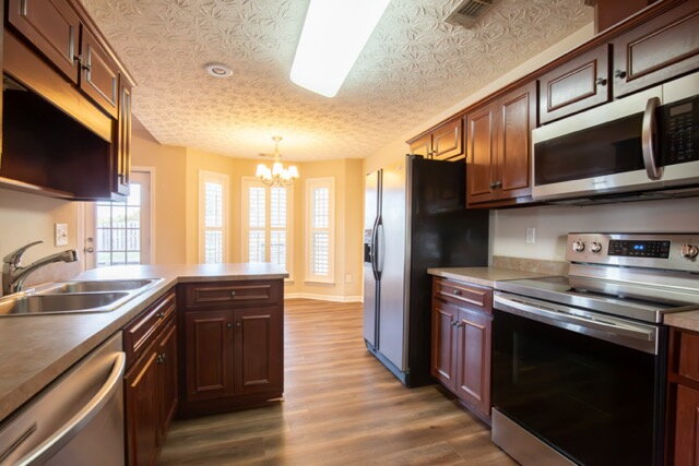 This 3bedroom 2 bath is located in a desirable neighborhood. Spacious living space, nice kitchen with breakfast area as well as separate dining area. The back patio and fenced back yard gives a great space for relaxing or entertaining all year round. Flooring throughout is tile & wood LVP. 2 car garage. Woodburning fireplace. This home includes a washer & dryer for use as well as pest control included. Total electric.