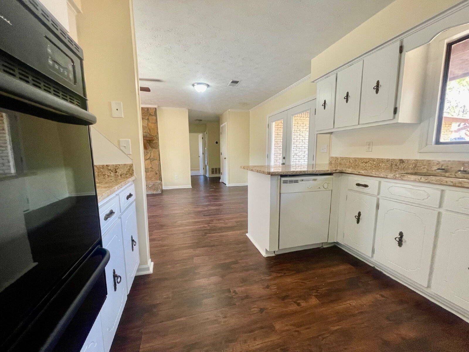 In your new kitchen will find granite counter tops, lots of storage to include a pantry, gas stove and wall oven. Both bathrooms are beautifully updated. In addition to the large open family room there is additional room just off the kitchen for dining, home office or another living space. This home has a gas stove, water heater & heat. Please only apply at Ten20property.com.
